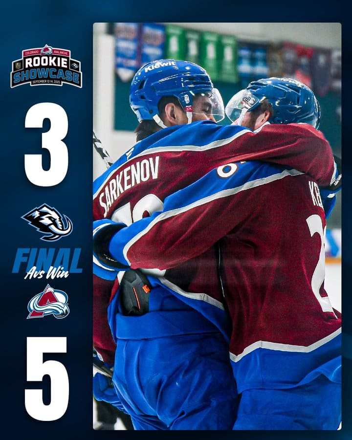 The Colorado Avalanche kicked off the Rookie Showcase in style on Friday night, earning a 5–3 comeback win over the Utah Mammoth at the South Suburban Sports Complex.