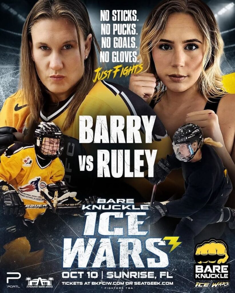 The upcoming BKFC Ice Wars event at Amerant Bank Arena in Sunrise, Florida, features several firsts. One of the most notable additions to the hockey-style fight card: its first-ever women’s bout. Christina “the Tiger” Barry will take on Valerie Ruley during the October 10 fight card.