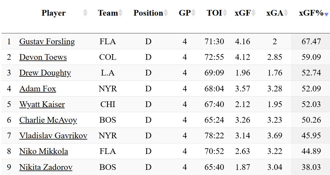 - xGF%: 52.03 (5th) among NHL defensemen with 65+ minutes at 5v5