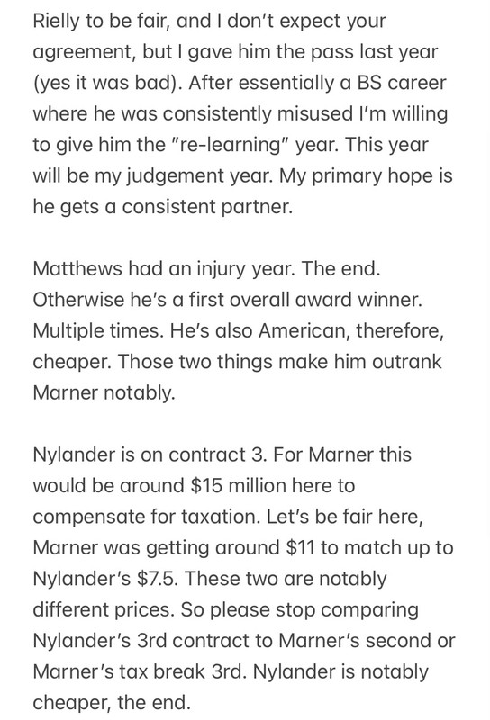 But keep Tavares, Rielly, Matthews and Nylander…? All of which have less career playoff points than Marner…